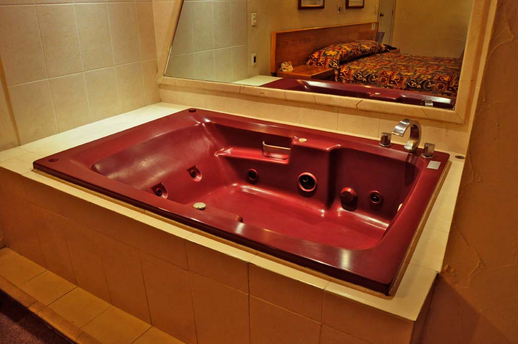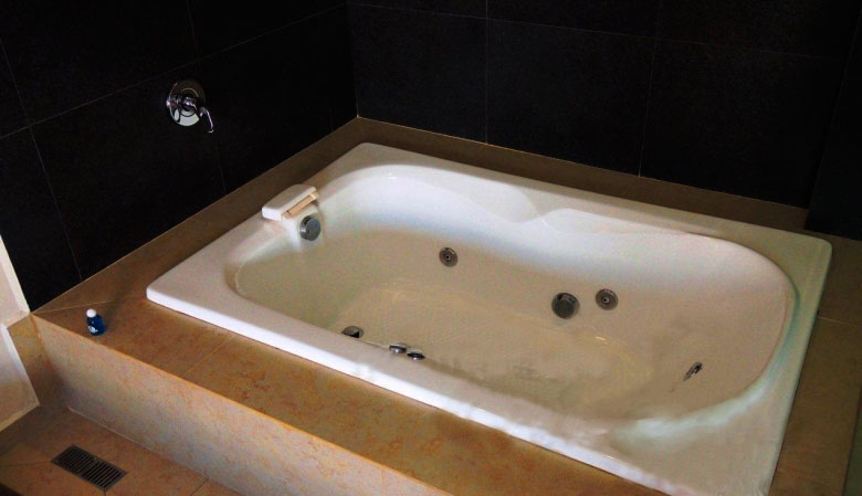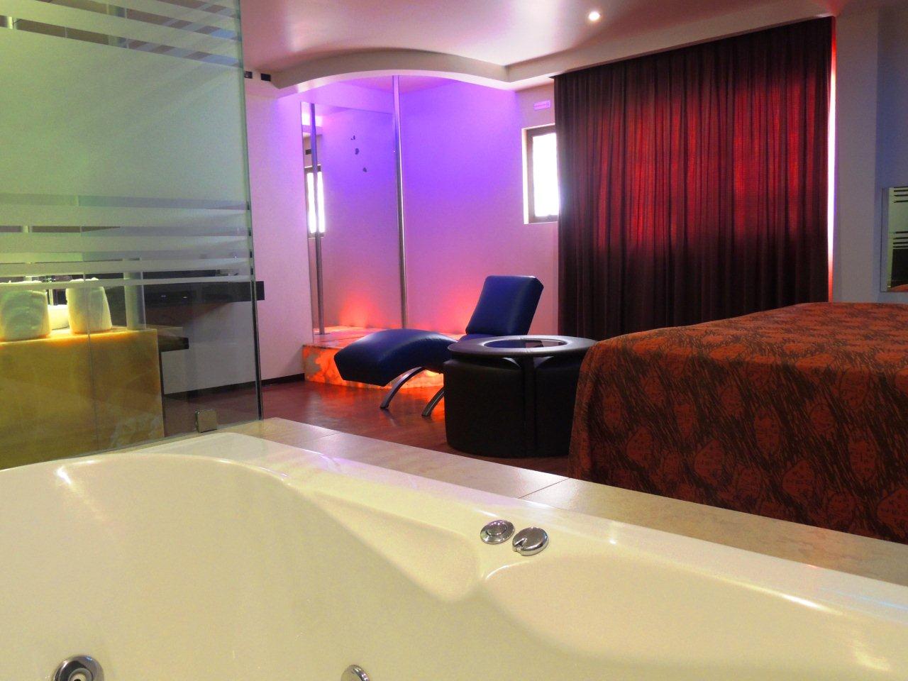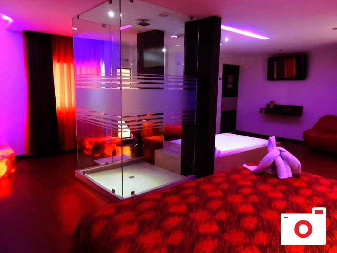 Habitación con hermoso jacuzzi y ducha de cristal, para que tu encuentro resulte muy romántico y especial.