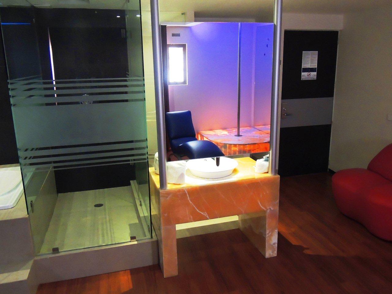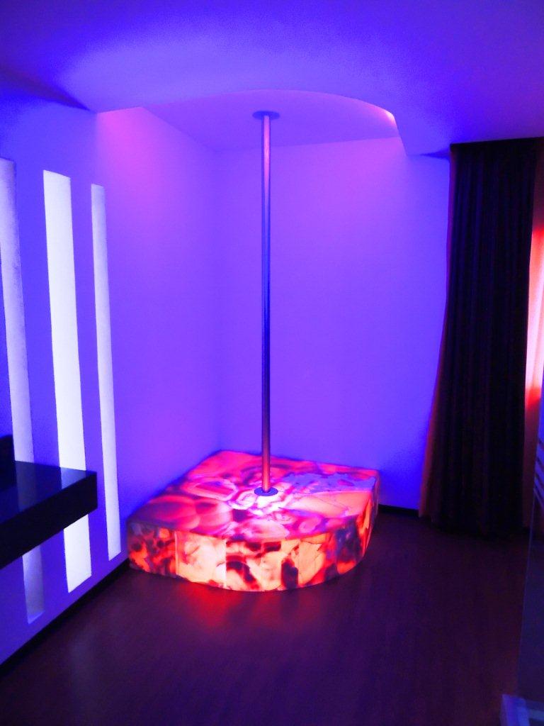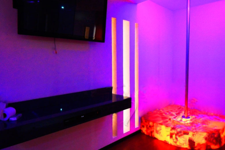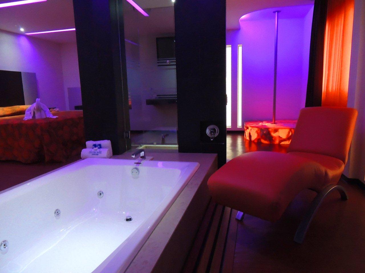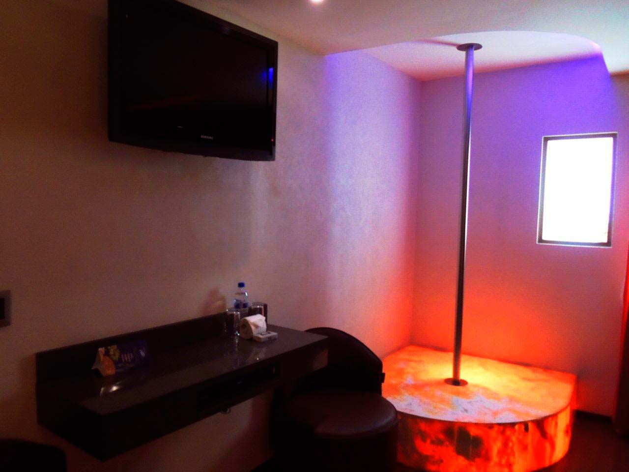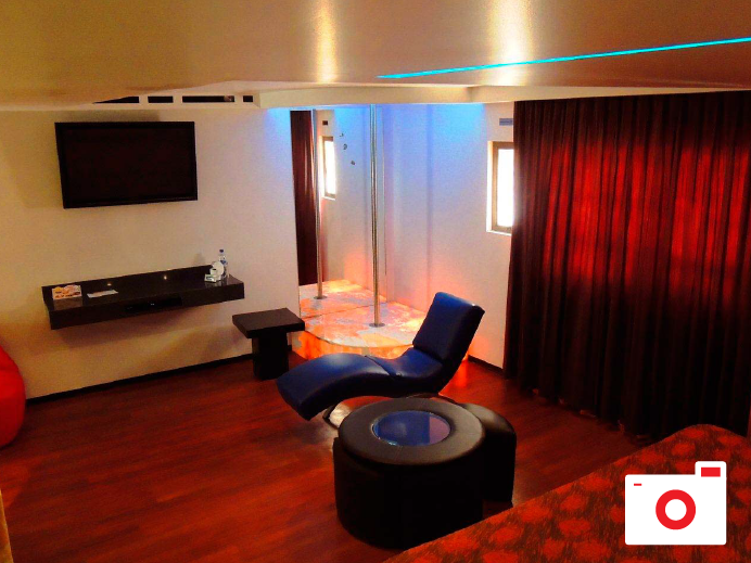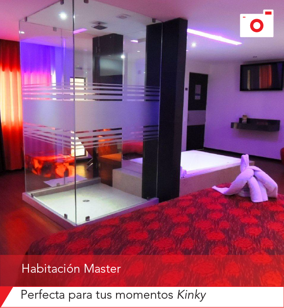 del HOTEL EJE VILLAS & SUITES, donde vas a disfrutar de amplios espacios y atracciones que no pueden faltar para enriquecer tu momento kinky, como el potro del amor y tubo para pole dance iluminado, que te cautivan al acompañarse por una pantalla gigante y el audio en sistema home theater.