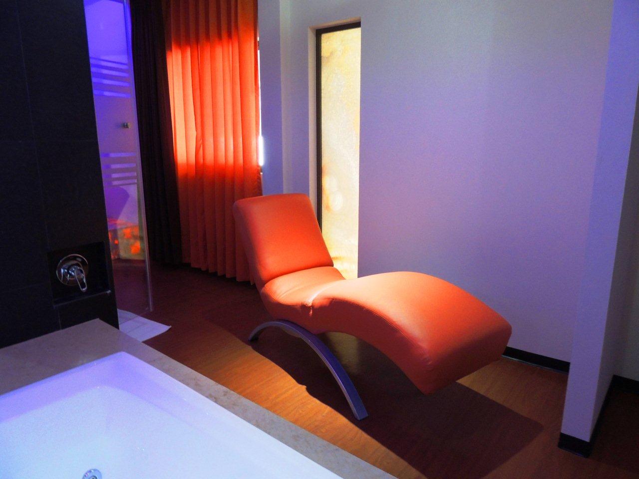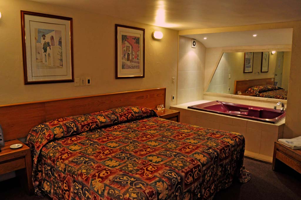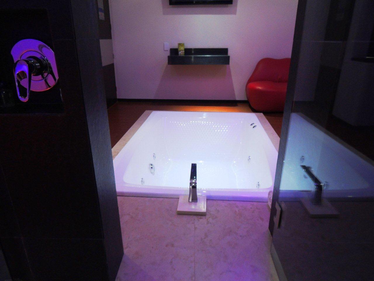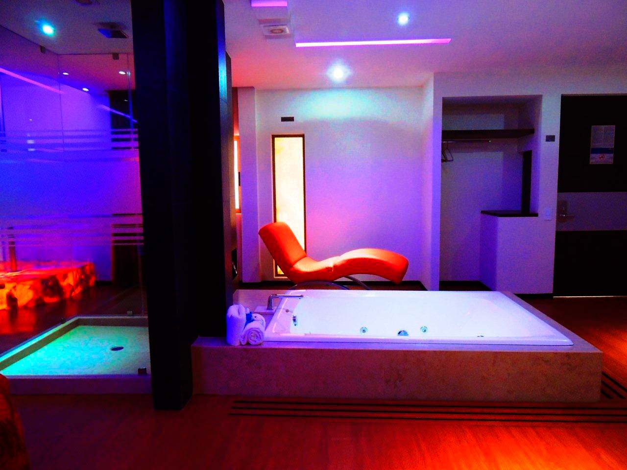 Habitación con un ambiente idóneo para despertar los instintos, amplia, con tina de cristal, jacuzzi y sonido surround.